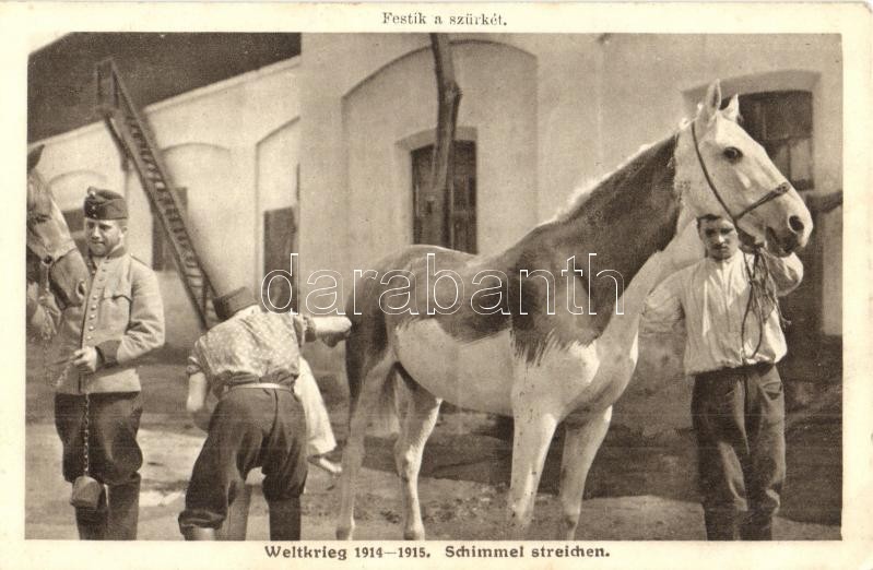 Weltkrieg 1914-1915. Schimmel streichen / Festik a szürkét / WWI Austr... https://www.darabanth.com/de/329-Fernauktion/329.0/Ansichtskarten/Militaria~2000031/Weltkrieg-1914-1915-Schimmel-streichen-Festik-a-szurket-WWI-Austro-Hungarian-military-soldie~II1836278