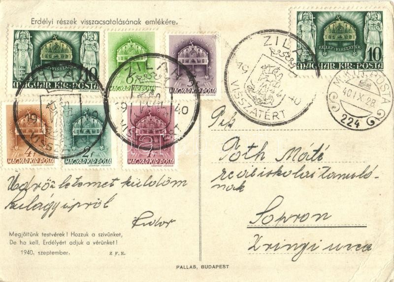 Beschreibung: Erdélyi részek visszacsatolásának emlékére / Transylvania, irredenta propaganda, "1940 Zilah visszatért" So. Stpl s: Németh N. (EK)