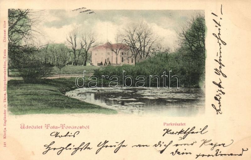 1900 Tata-Tóváros, park. Kiadja Engländer és Társa https://www.darabanth.com/de/329-Fernauktion/329.0/Ansichtskarten/Ungarn~2000005/1900-Tata-Tovaros-park-Kiadja-Englander-es-Tarsa~II1755928