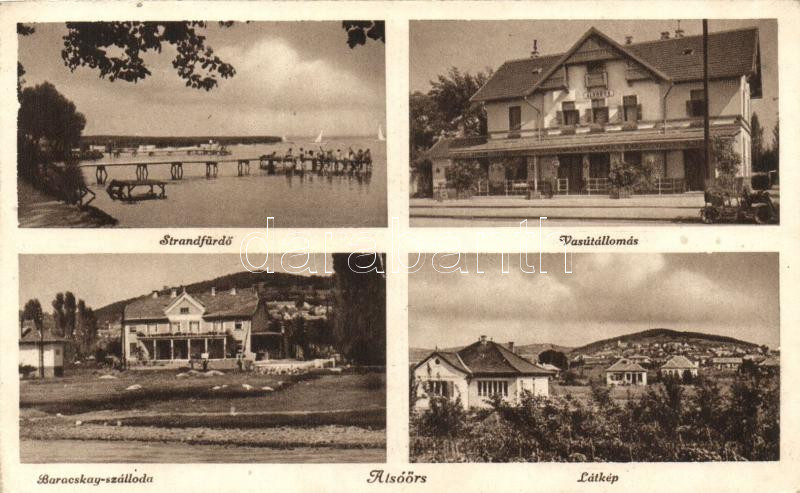 Alsóörs, vasútállomás, Baracskay szálloda, strand (EK) https://www.darabanth.com/de/329-Fernauktion/329.0/Ansichtskarten/Ungarn~2000005/Alsoors-vasutallomas-Baracskay-szalloda-strand-EK~II1272300