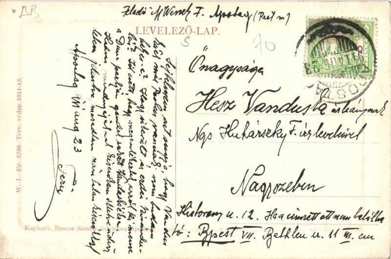 Beschreibung: Apostag, Duna part. W. L. Bp. 5756. Kapható Bencze Sándor üzletében (EK)