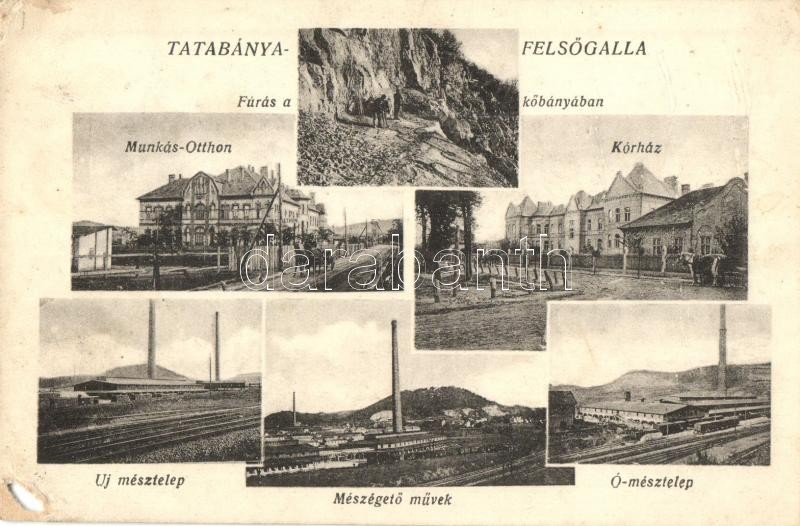 Beschreibung: Felsőgalla (Tatabánya), Fúrás a kőbányában, Munkásotthon, Kórház, Új mésztelep, Mészégető művek, Ó-mésztelep (b)