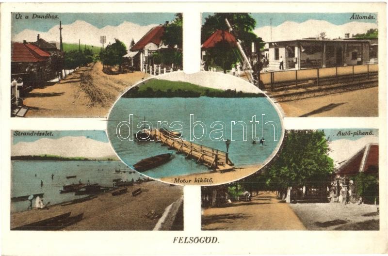 Felsőgöd (Göd), Út a Dunához, Motor kikötő, Vasútállomás, sorompó, Str... https://www.darabanth.com/de/329-Fernauktion/329.0/Ansichtskarten/Ungarn~2000005/Felsogod-God-Ut-a-Dunahoz-Motor-kikoto-Vasutallomas-sorompo-Strand-furdozok-A~II1835663