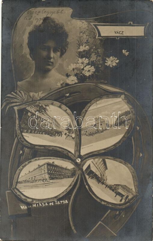 Vác, Fegyház, Kossuth tér, Fő tér, lóherés mozaiklap, floral Art Nouve... https://www.darabanth.com/de/329-Fernauktion/329.0/Ansichtskarten/Ungarn~2000005/Vac-Fegyhaz-Kossuth-ter-Fo-ter-loheres-mozaiklap-floral-Art-Nouveau~II1837040