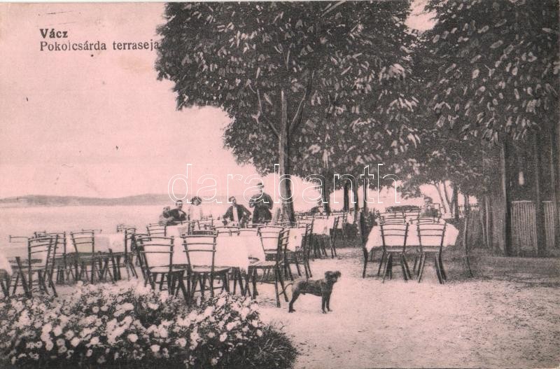 Vác, Pokolcsárda étterem terasza, kert, kutya. Hratzky Lajos Pokolcsár... https://www.darabanth.com/de/329-Fernauktion/329.0/Ansichtskarten/Ungarn~2000005/Vac-Pokolcsarda-etterem-terasza-kert-kutya-Hratzky-Lajos-Pokolcsarda-vendegloje-Vac-atel~II1836388
