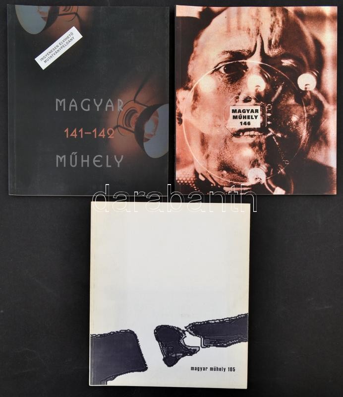 1997-2008 Magyar Műhely művészeti folyóirat 3 száma: Magyar Műhely 36. évf. 105. sz., Magyar Műhely 46. évf. 141-142. sz., 47. évf. 146. sz. Kiadói papírkötés.