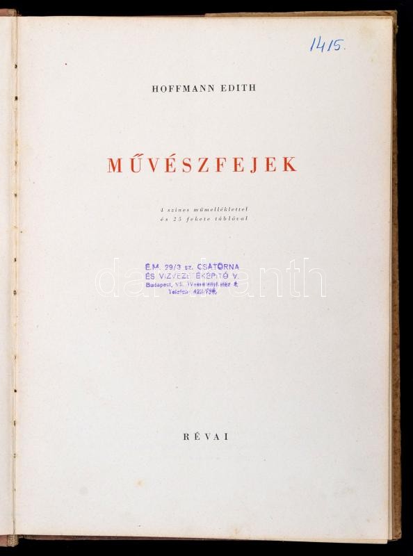 Hoffmann Edith: Művészfejek. Bp., 1945, Révai. Kiadói félvászon-kötés, kiadói papírborítóban, a címkép leszakadt a borítóról, de egyébként jó állapotban.