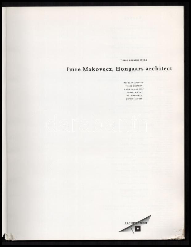 Imre Makovecz, Hongaars architect. Rotterdam, 1989, Architectuur. Kiadói papírkötés, a könyv alsó sarka és a gerinc alsó része sérült, holland nyelven./ Paperbinding, damaged, in Dutch language.