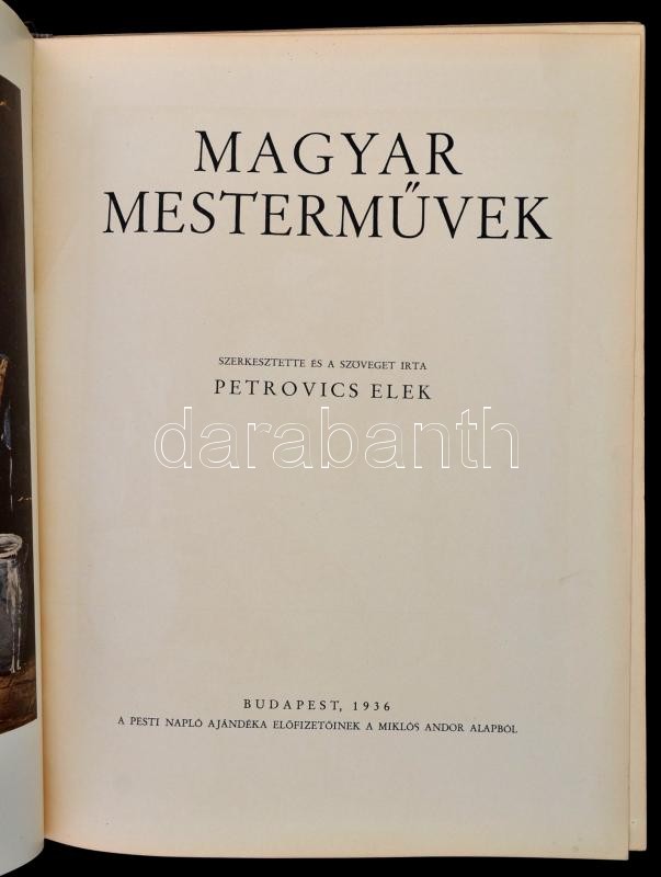 Petrovics Elek: Magyar Mesterművek. Bp., 1936, Pesti Napló. Rengeteg k... https://www.darabanth.com/de/329-Fernauktion/329.0/Bucher/Bucher-Architektur-Kunst~1000006/Petrovics-Elek-Magyar-Mestermuvek-Bp-1936-Pesti-Naplo-Rengeteg-keppel-illusztralt-Kiadoi~II1820135