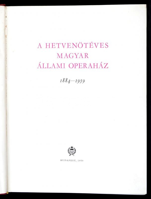 A hetvenötéves Magyar Állami Operaház. 1884-1959. Bp., 1959, Magyar Állami Operaház, Révai-ny., 251 p. Kiadói egészvászon-kötés, kopottas borítóval, viseltes elülső előzéklappal.