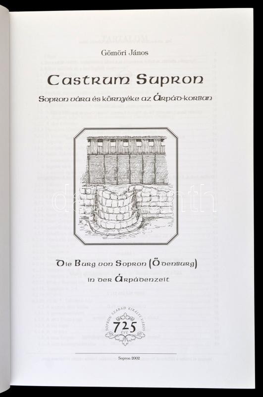 Gömöri János: Castrum Sopron. Sopron vára és környéke az Árpád-korban. Die Burg von Sopron (Ödenburg) in der Árpádenzeit. Sopron, 2002, Scarbantia Társaság. Kiadói papírkötés, angol és német nyelvű összefoglalóval. Megjelent 1500 példányban.