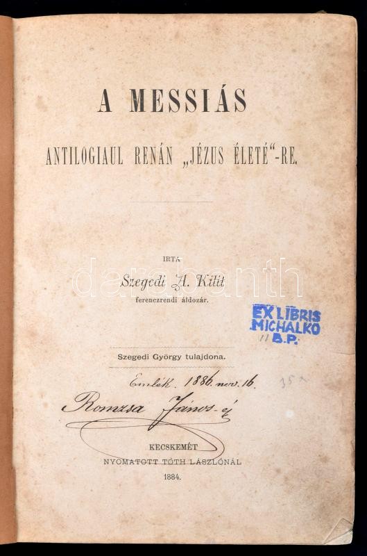 Szegedi A. Kilit (Szegedi Kilit Antal (1816-1888): A messiás. Antilogi... https://www.darabanth.com/de/329-Fernauktion/329.0/Bucher/Bucher-Religion~1000013/Szegedi-A-Kilit-Szegedi-Kilit-Antal-1816-1888-A-messias-Antilogiaul-Renan-Jezus-Eletere~II1660110