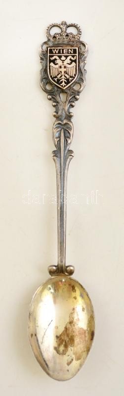 Beschreibung: Ezüst(Ag) "Wels" címeres zománcozott díszkanál, jelzett, h: 10,5 cm, bruttó: 9,7 g