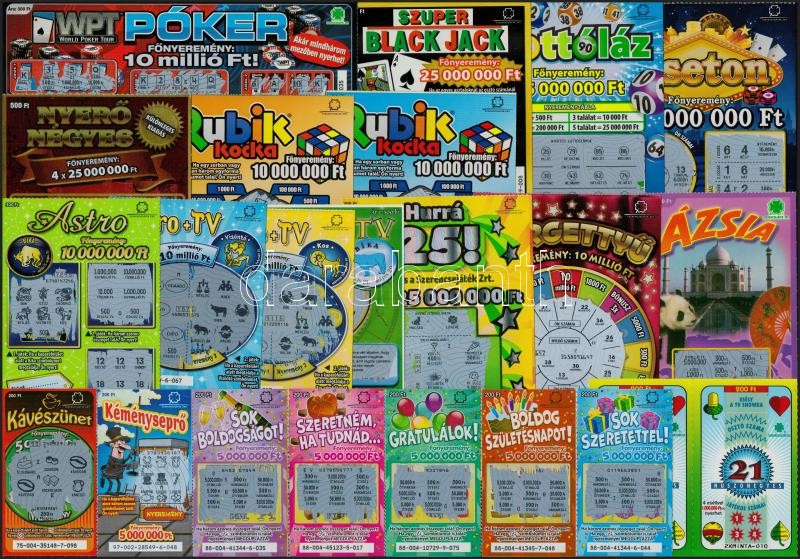 ~2000. 25db-os vegyes magyar, használt sorsjegy tétel T:II https://www.darabanth.com/de/329-Fernauktion/329.0/Numismatik/Aktien-und-Tickets~2500005/7E2000-25db-os-vegyes-magyar-hasznalt-sorsjegy-tetel-TII~II1836182