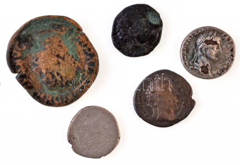 Beschreibung: 5db-os vegyes római denár és rézpénz tétel, közte hamis darabbal is T:2-,3