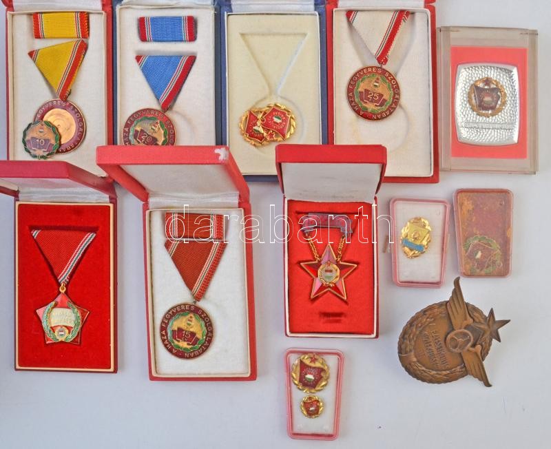 12db-os vegyes magyar kitüntetés és jelvény tétel a szocializmus időszakából, közte "A Haza Fegyveres Szolgálatában", "A balesetmentes közlekedésért" T:vegyes,közte sérült darabok és tokok