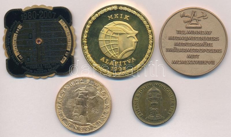 Beschreibung: 5db-os vegyes numizmatikai tétel, benne öröknaptár, emlékérem, zseton, replika érme T:2