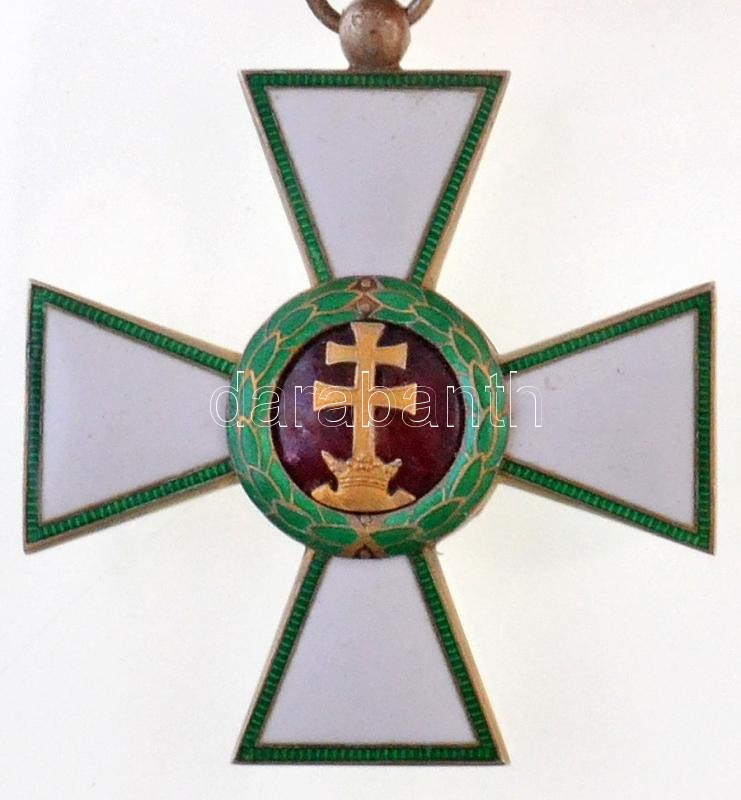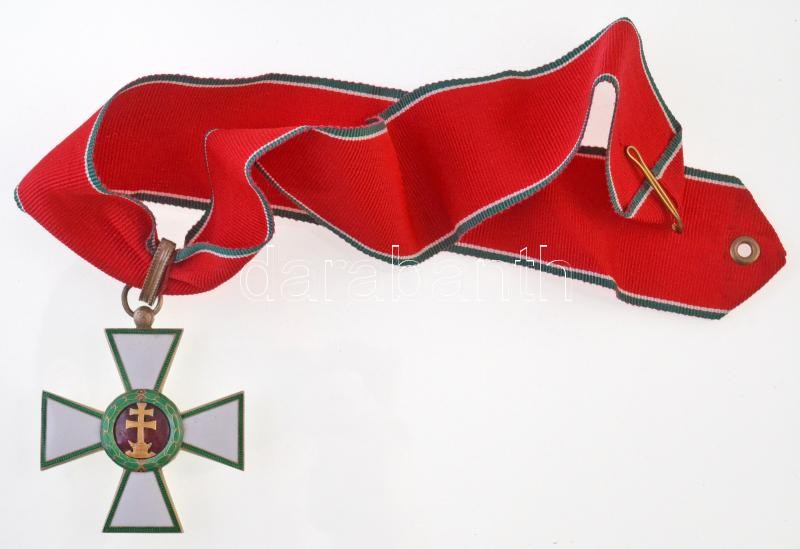 Hungary 1935-1945. "Hungarian Order of Merit, Commander's Cross" enamelled decoration with red neck ribbon in not original case (52mm later type) C:AU,XF the ring and the ribbon-holder are replaced