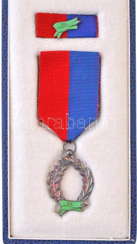 1992. "Köztársasági Őrezredi Szolgálati Jel 20 év után" jelzett, zománcozott Ag kitüntetés, eredeti dísztokban, szalagsávval és miniatűrrel együtt T:1-