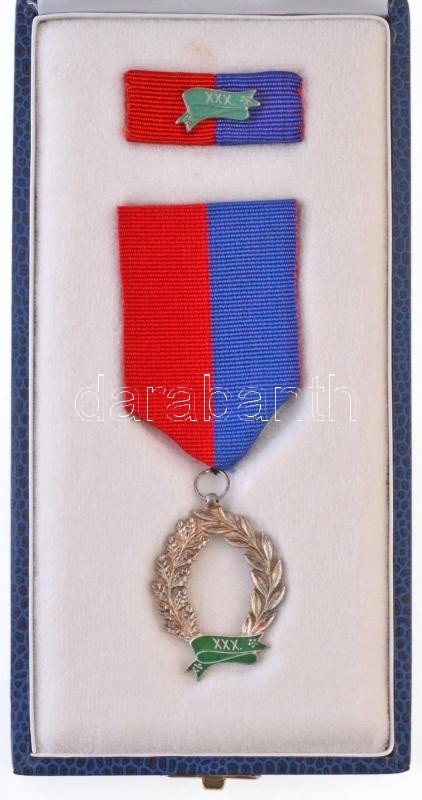 1992. "Köztársasági Őrezredi Szolgálati Jel 30 év után" jelzett, zománcozott Ag kitüntetés, eredeti dísztokban, szalagsávval és miniatűrrel együtt T:1-