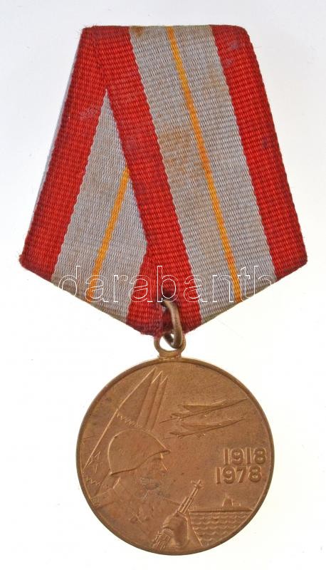 Szovjetunió 1978. "60 éves a Szovjet Fegyveres Erők" sárgaréz kitüntetés mellszalagon T:1-