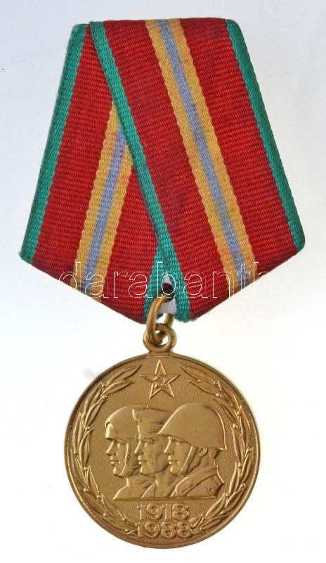 Szovjetunió 1988. "70 éves a Szovjet Fegyveres Erők" sárgaréz kitüntetés mellszalagon T:1-