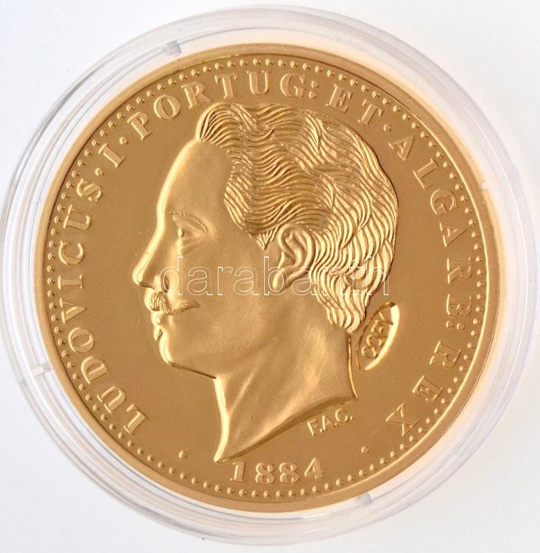 DN "Történelmi aranypénzek - I. Lajos 10.000 Reis 1884""... https://www.darabanth.com/de/329-Fernauktion/329.0/Numismatik/Moderne-Beischlage-Fantasiemunzen~2500010/DN-Tortenelmi-aranypenzek-I-Lajos-10000-Reis-1884-aranyozott-Cu-Ni-utanveret-COPY-beut~II1834125