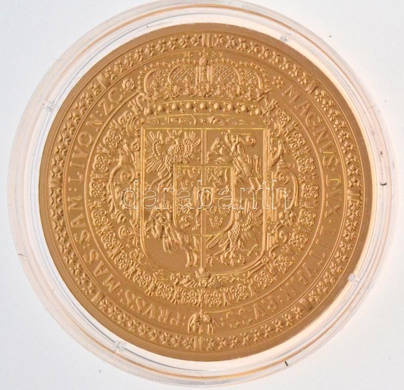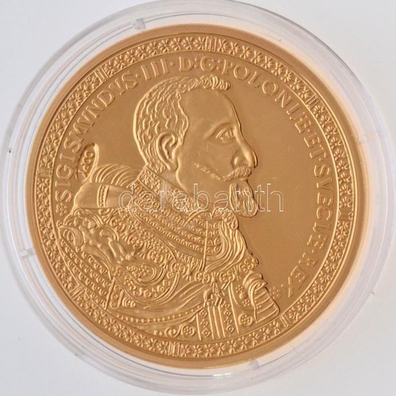 Beschreibung: DN "Történelmi aranypénzek - III. Zsigmond 100 dukát, 1621" aranyozott Cu-Ni utánveret "COPY" beütéssel, tanúsítvánnyal (20g/38,61mm) T:PP