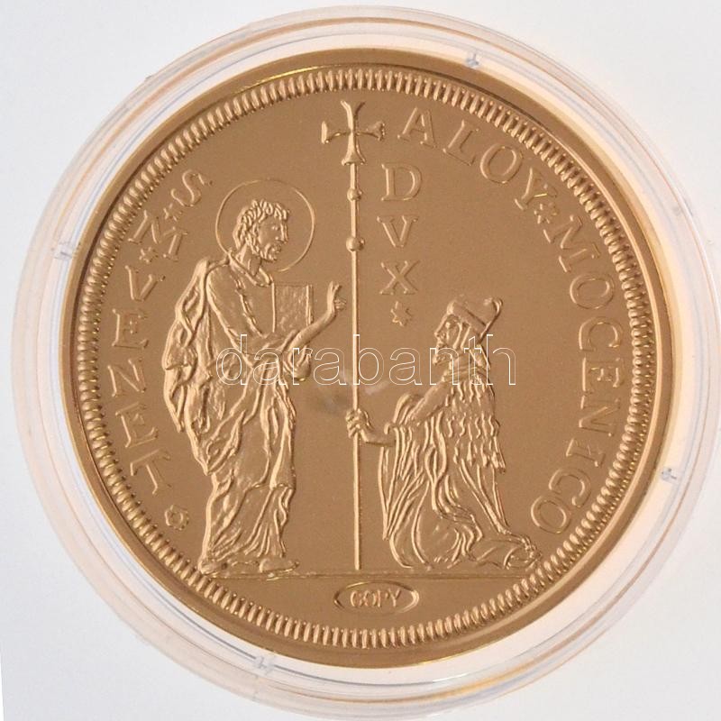DN "Történelmi aranypénzek - IV. Alvise Giovanni Mocenigo 50 zecchini, 1763-1778" aranyozott Cu-Zn utánveret "COPY" beütéssel, tanúsítvánnyal (20g/38,61mm) T:PP