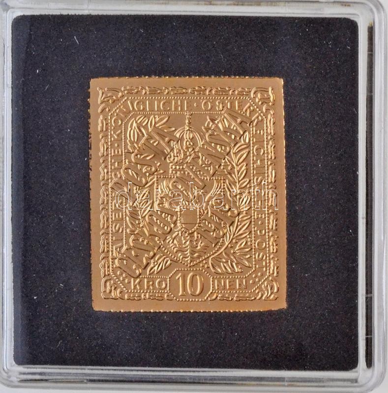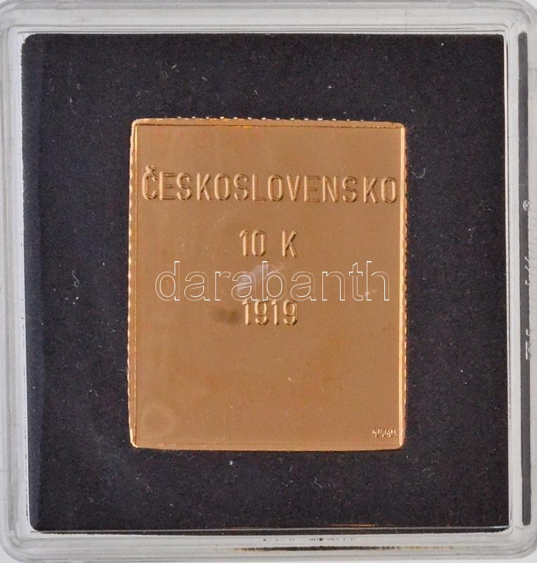 DN "Világ Bélyegcsodái - Csehszlovákia 10 Korona 1919" aranyozott Cu bélyegérem tanúsítvánnyal (24,6x28,7mm) T:PP