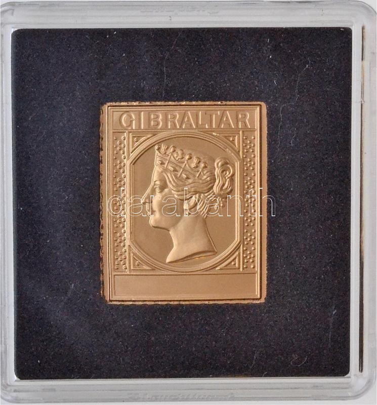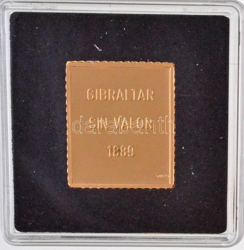 DN "Világ Bélyegcsodái - Gibraltár Sin Valor (érték nélküli) 1889" aranyozott Cu bélyegérem tanúsítvánnyal (21,4x24,8mm) T:PP