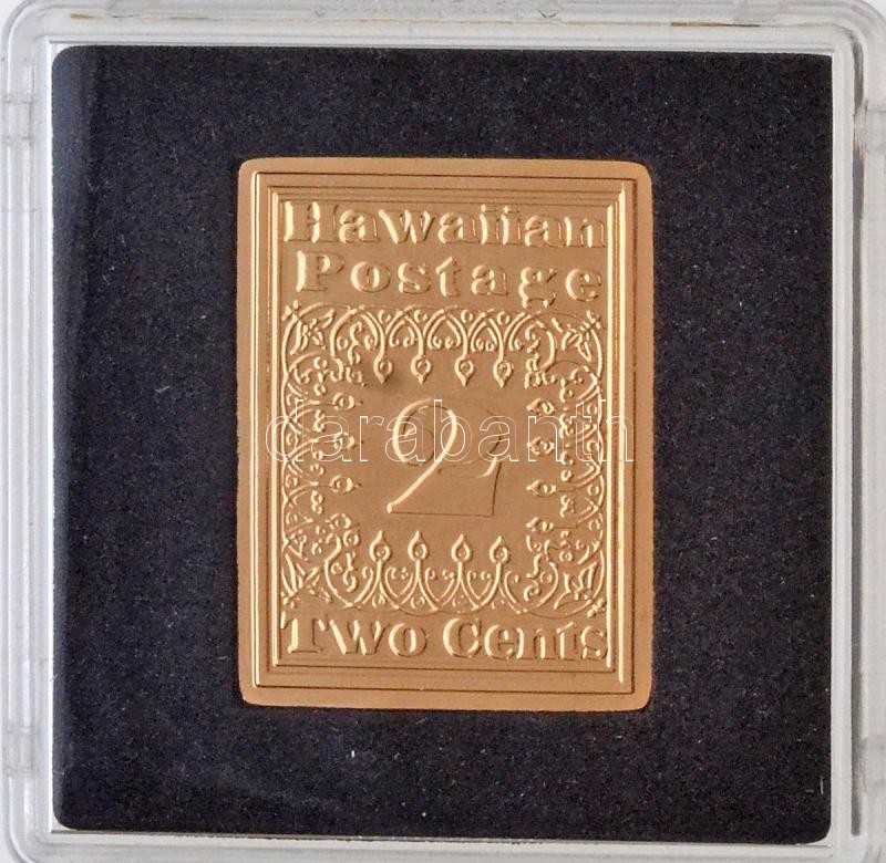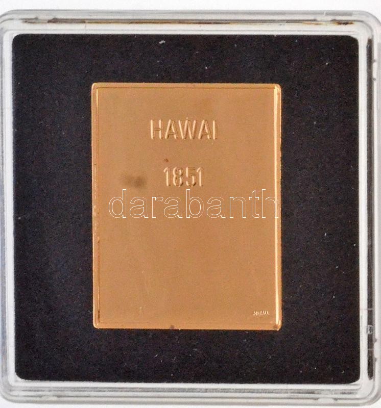 DN "Világ Bélyegcsodái - Hawaii 2 Cent 1851" aranyozott Cu bélyegérem tanúsítvánnyal (23,5x30,5mm) T:PP