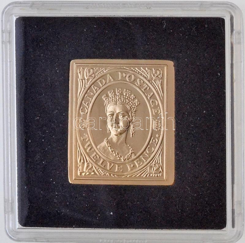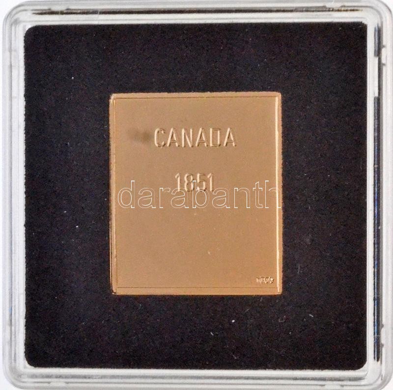 DN "Világ Bélyegcsodái - Kanada 12 Penny 1851" aranyozott Cu bélyegérem tanúsítvánnyal (22,5x25,5mm) T:PP
