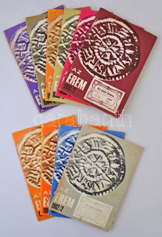 "Az érem" című folyóirat 10db különböző száma 1977-1986 közö... https://www.darabanth.com/de/329-Fernauktion/329.0/Numismatik/Numismatische-Literatur~2500002/Az-erem-cimu-folyoirat-10db-kulonbozo-szama-1977-1986-kozott-Hasznalt-allapotban~II1837803