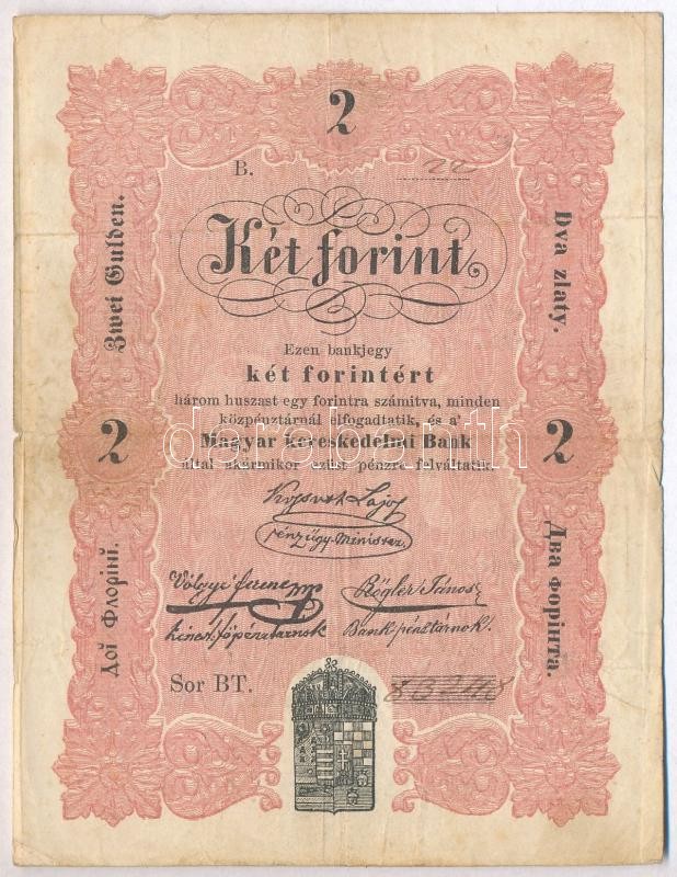 1848. 2Ft "Kossuth bankó" T:III https://www.darabanth.com/de/329-Fernauktion/329.0/Numismatik/Ungarische-Banknoten~2500007/1848-2Ft-Kossuth-banko-TIII~II1838681