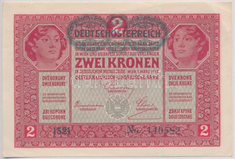 1917. 2K "Deutschösterreich" felülbélyegzéssel T:I- https://www.darabanth.com/de/329-Fernauktion/329.0/Numismatik/Ungarische-Banknoten~2500007/1917-2K-Deutschosterreich-felulbelyegzessel-TI-~II1834237