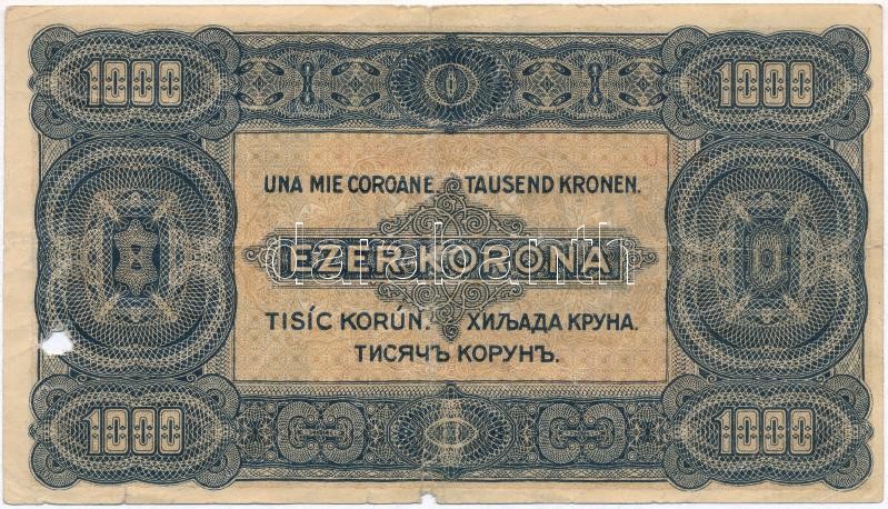 Beschreibung: 1923. 1000K "8 FILLÉR - NYOLC FILLÉR" felülnyomással, nyomdahely jelölés nélkül T:III,III- anyaghiány, ly.