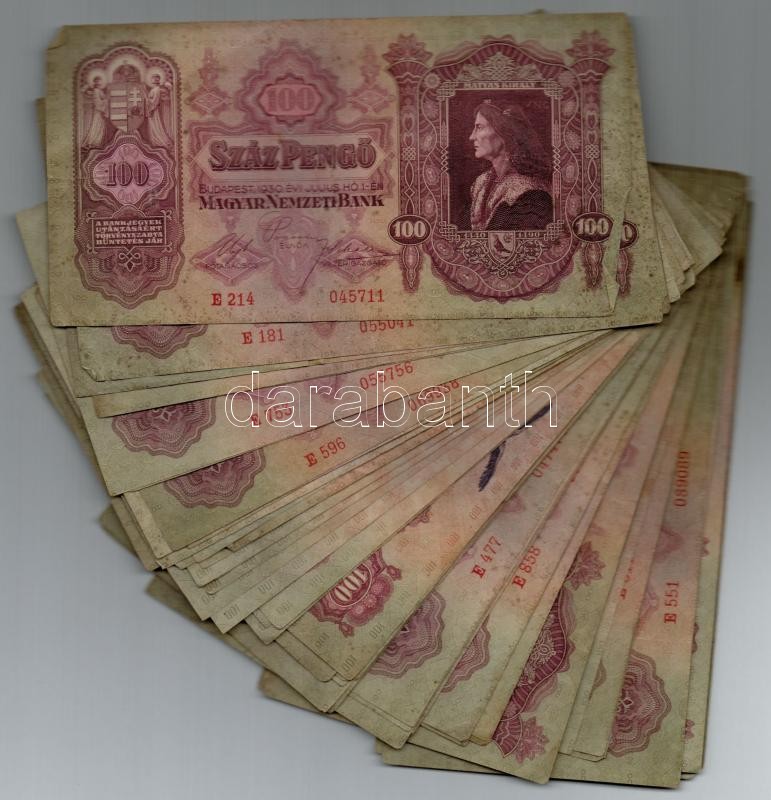 1930. 100P (67x) T:III,III- https://www.darabanth.com/de/329-Fernauktion/329.0/Numismatik/Ungarische-Banknoten~2500007/1930-100P-67x-TIII-III-~II1837147