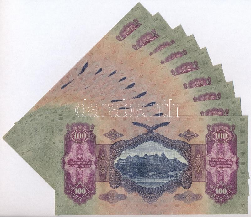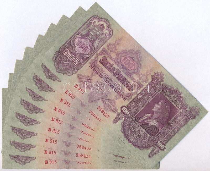 1930. 100P (9x) sorszámkövetők T:I https://www.darabanth.com/de/329-Fernauktion/329.0/Numismatik/Ungarische-Banknoten~2500007/1930-100P-9x-sorszamkovetok-TI~II1839194