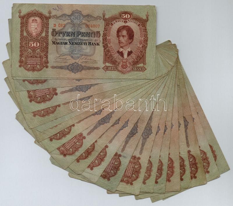 1932. 50P (22x) T:III,III- https://www.darabanth.com/de/329-Fernauktion/329.0/Numismatik/Ungarische-Banknoten~2500007/1932-50P-22x-TIII-III-~II1837151