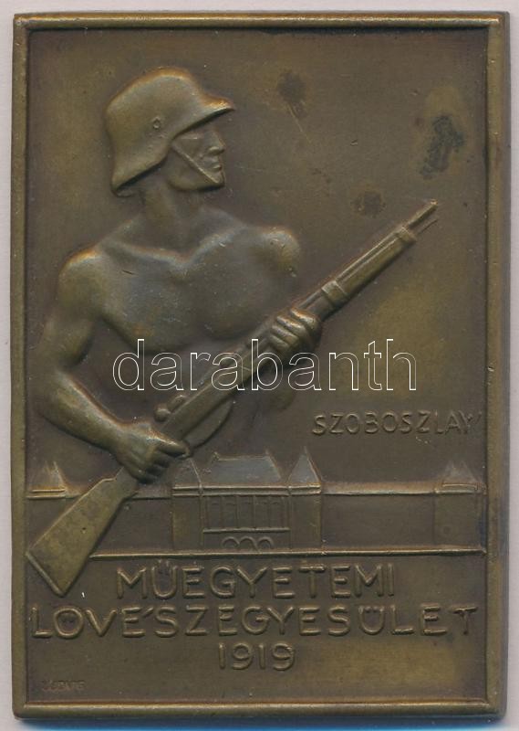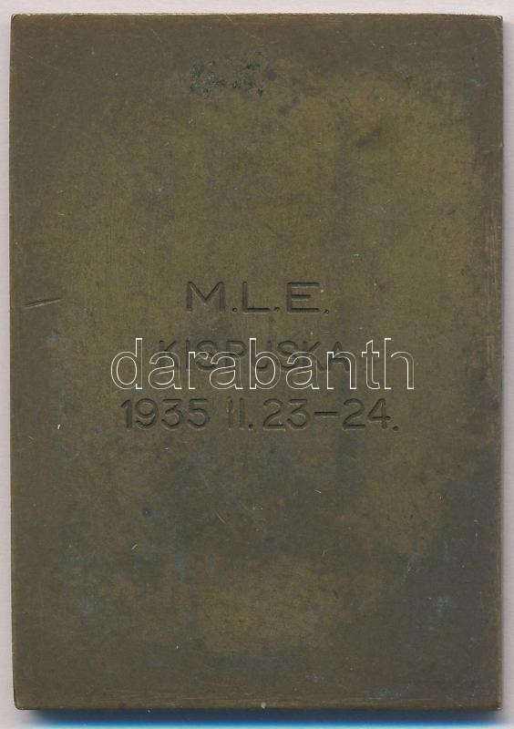 1939. "Műegyetemi Lövészegyesület 1919 / M.L.E. Kispuska 1935 II. 23-24." szögletes Br plakett "LUDVIG" gyártói jelzéssel. Szign.: Szoboszlay (60x42mm) T:2
