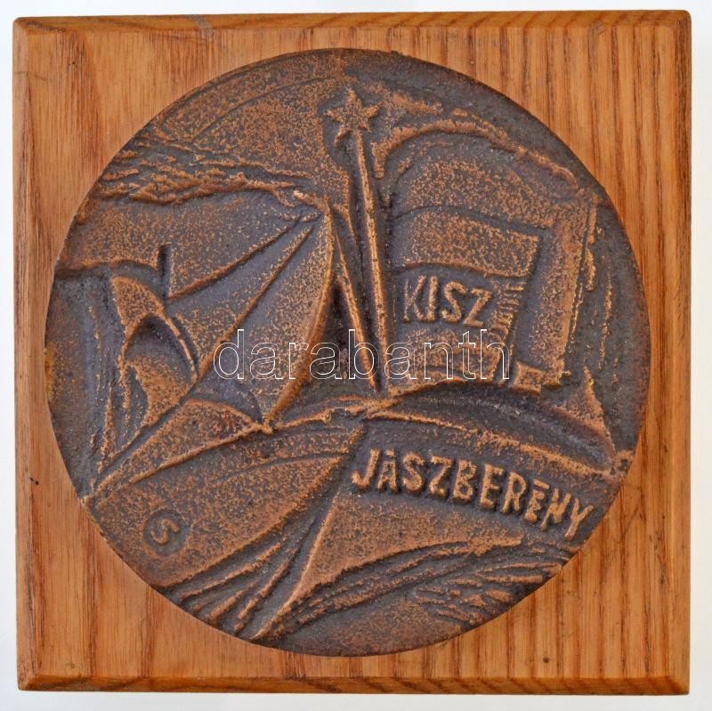 Beschreibung: DN "Jászberény - KISZ" BR plakett, fa talpra rögzítve (87mm) T:2