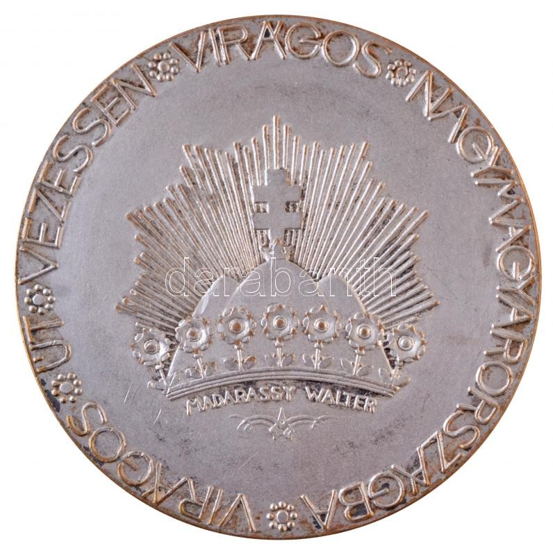 Madarassy Walter (1909-1994) 1930. "Virágos Budapest Virágos Magyarország Jutalomérme / Virágos út vezessen virágos Nagymagyarországba" ezüstözött Br emlékérem (60mm) T:2,2- ezüstözés kopott HP 3468.