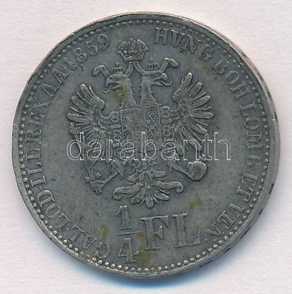 1859E 1/4Fl Ag "Ferenc József" T:2- https://www.darabanth.com/de/329-Fernauktion/329.0/Numismatik/Ungarische-Munzen-und-Munzen-mit-ungarischem-Munzzeichen~2500008/1859E-14Fl-Ag-Ferenc-Jozsef-T2-~II1837440