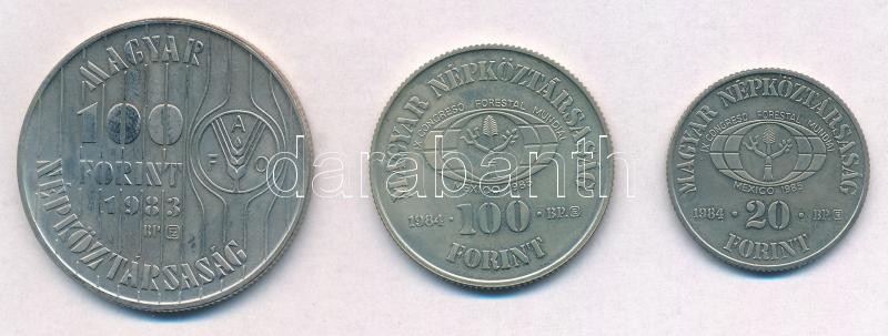 Beschreibung: 1983. 100ft Cu-Ni "FAO-SOROZAT II. - Több gabonát a világnak" + 1984. 20Ft Cu-Ni "FAO - Védd az erdőt" + 100Ft Cu-Ni "FAO - Ha kivágod, ültess is" T:1-