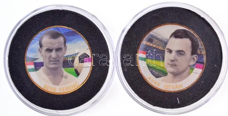 Beschreibung: 1992-2016. 50Ft Cu-Ni aranyozott, festett multicolor érem (2x) "A Magyar Foci Legendái" sorozat: Avar István, Bene Ferenc T:2 ph.