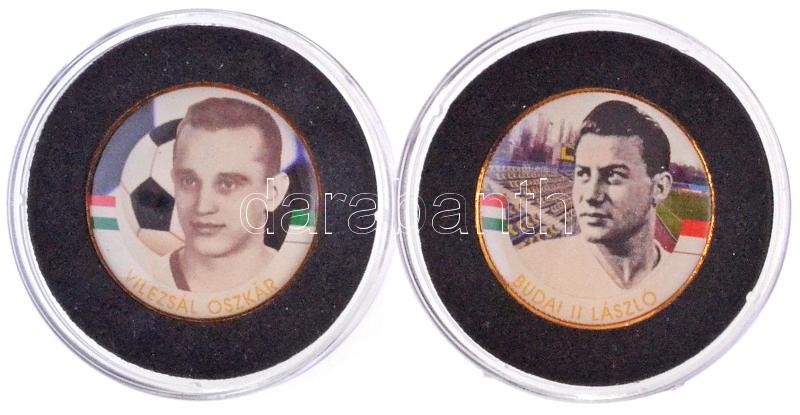 Beschreibung: 1992-2016. 50Ft Cu-Ni aranyozott, festett multicolor érem (2x) "A Magyar Foci Legendái" sorozat: Budai II László, Vilezsál Oszkár T:2