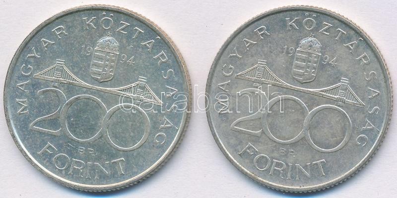 1994. 200Ft Ag "Deák" (2x) T:2 https://www.darabanth.com/de/329-Fernauktion/329.0/Numismatik/Ungarische-Munzen-und-Munzen-mit-ungarischem-Munzzeichen~2500008/1994-200Ft-Ag-Deak-2x-T2~II1835035