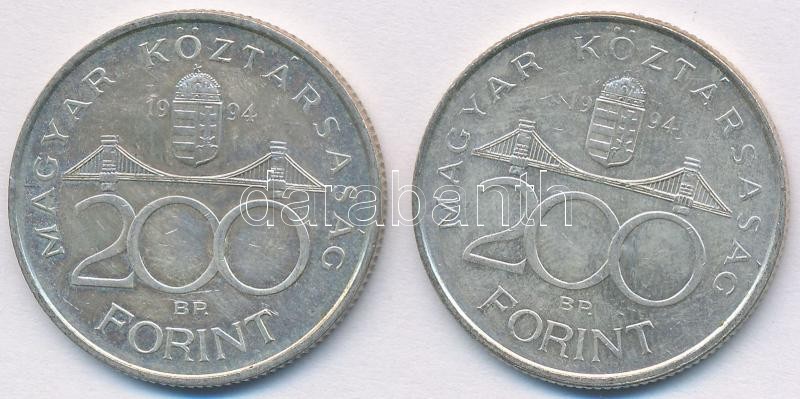 1994. 200Ft Ag "Deák" (2x) T:2 https://www.darabanth.com/de/329-Fernauktion/329.0/Numismatik/Ungarische-Munzen-und-Munzen-mit-ungarischem-Munzzeichen~2500008/1994-200Ft-Ag-Deak-2x-T2~II1835043