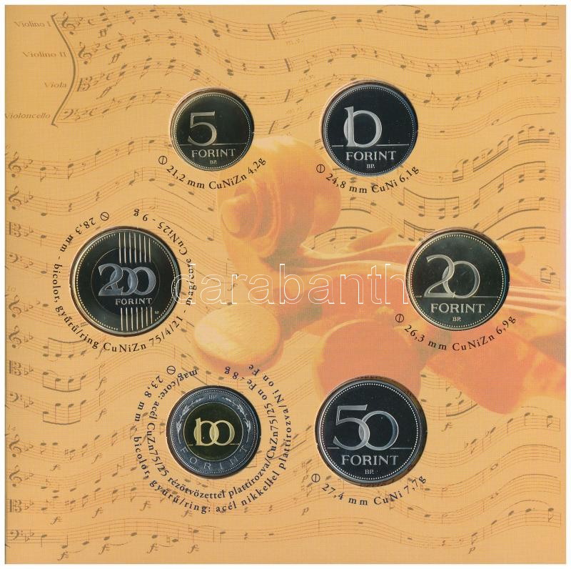 2009. 5Ft-200Ft "Haydn" (7xklf) forgalmi érme sor, benne &qu... https://www.darabanth.com/de/329-Fernauktion/329.0/Numismatik/Ungarische-Munzen-und-Munzen-mit-ungarischem-Munzzeichen~2500008/2009-5Ft-200Ft-Haydn-7xklf-forgalmi-erme-sor-benne-Joseph-Haydn-Ag-emlekerem-12g09992~II1835301